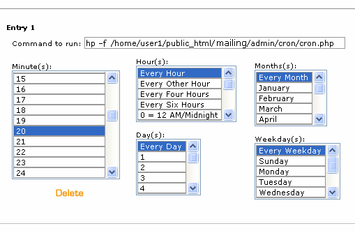 Minute of the hour Set to a number between 0 – 59 for the corresponding minute of the hour or * for every minute |