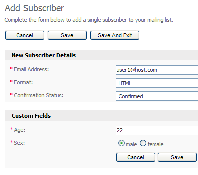 For this example we will manually add a few contacts to our contact list, being sure to add a variety of age ranges (for example, 15, 21, 22, 25 and 40) and sexes.