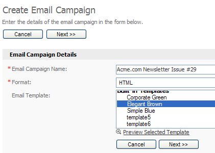 This will start the "Import Contacts" wizard. Choose the contact list you want to import contacts to and click the "Next >>" button.